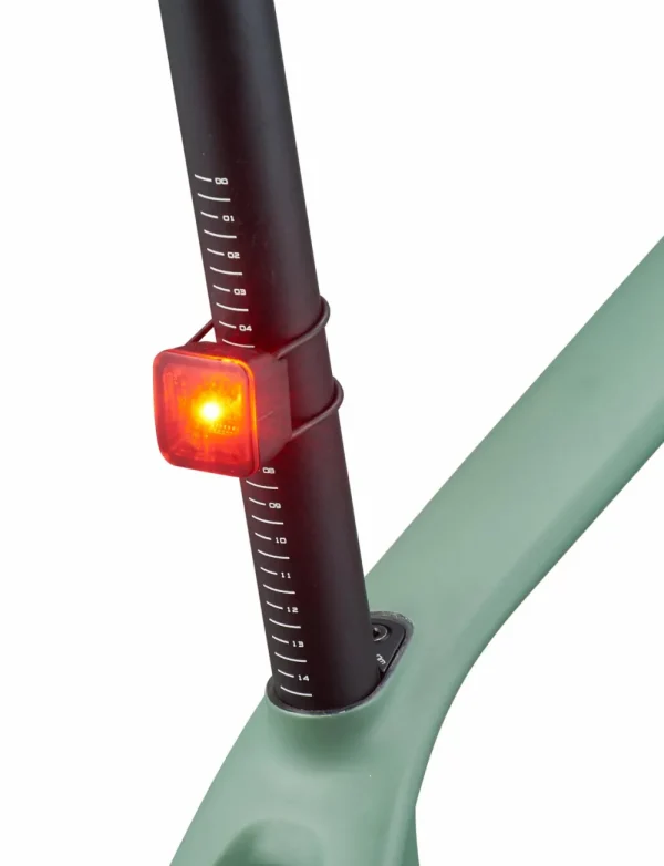 Quatre modes Rouge arrière : Continu (10 lumens) , Clignotant haute puissance (20 lumens) , Clignotant Disco (14 lumens) , Clignotant Éco (5 lumens).