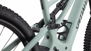Le débattement de 150 mm du Turbo Levo inspirée de notre Stumpjumper Evo offre une suspension sensible sur les petits chocs, attaque les pierriers sans broncher, et les talonnages ne lui font pas peur, tout en offrant une réponse au pédalage incroyable et d’une efficacité totale.