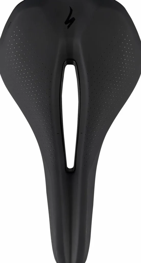 Les panneaux à faible frottement sur le bec et l’arrière améliorent le rendement et la mobilité du cycliste sur l’arrière de la selle.